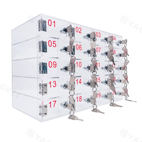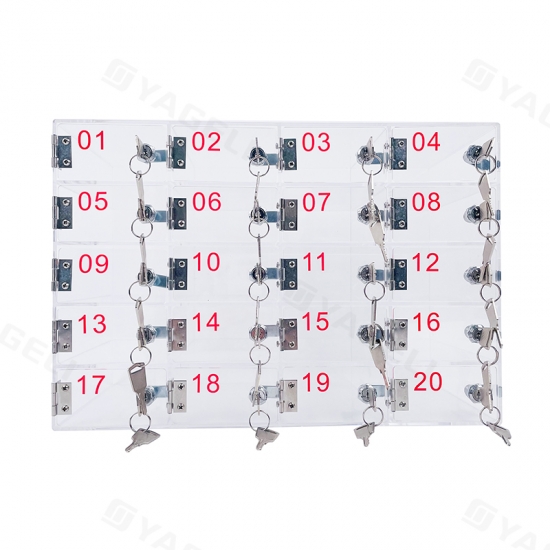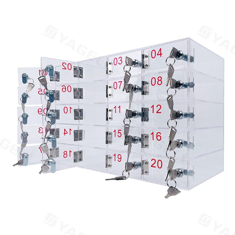 Изготовленный из прочного прозрачного акрила, этот шкаф обеспечивает прозрачность для легкой идентификации устройств; его 20 запирающихся отсеков обеспечивают безопасное индивидуальное хранение, предотвращая кражи, а универсальный дизайн подходит для различных помещений, например, офисов или школ, что делает его практичным решением для организации и защиты нескольких мобильных устройств.