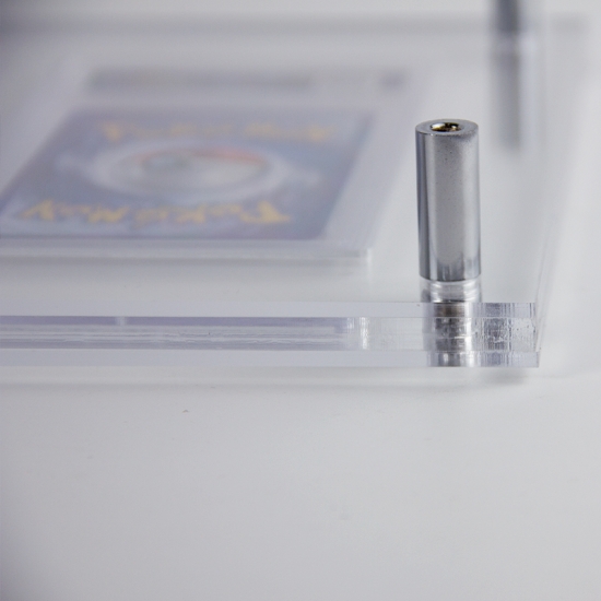 Основная функция этой подставки — демонстрация трех оценочных капсул для коллекционных карточных игр: она надежно удерживает каждую капсулу в специальном слоте под оптимальным углом обзора, подчеркивая изображение карты и информацию об оценке (например, этикетки PSA) для удобства восприятия. Она также служит органайзером, позволяя аккуратно разместить несколько капсул (а не сложить их стопкой или разбросать), защищая от царапин и повреждений, а также улучшая визуальное оформление небольшой коллекции для личного использования или демонстрации в магазинах.