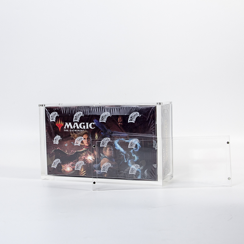 Основная функция этого акрилового футляра — защита запечатанных коробок с бустерами MTG: он служит барьером от воздействия окружающей среды (пыли, царапин, случайных ударов), сохраняя ценность коробки как коллекционного предмета. Он также служит инструментом для демонстрации, позволяя коллекционерам аккуратно и привлекательно выставлять свои коробки с бустерами MTG на полках или выставочных поверхностях. Кроме того, он аккуратно упорядочивает запечатанные коробки, предотвращая их повреждение при штабелировании или беспорядке.